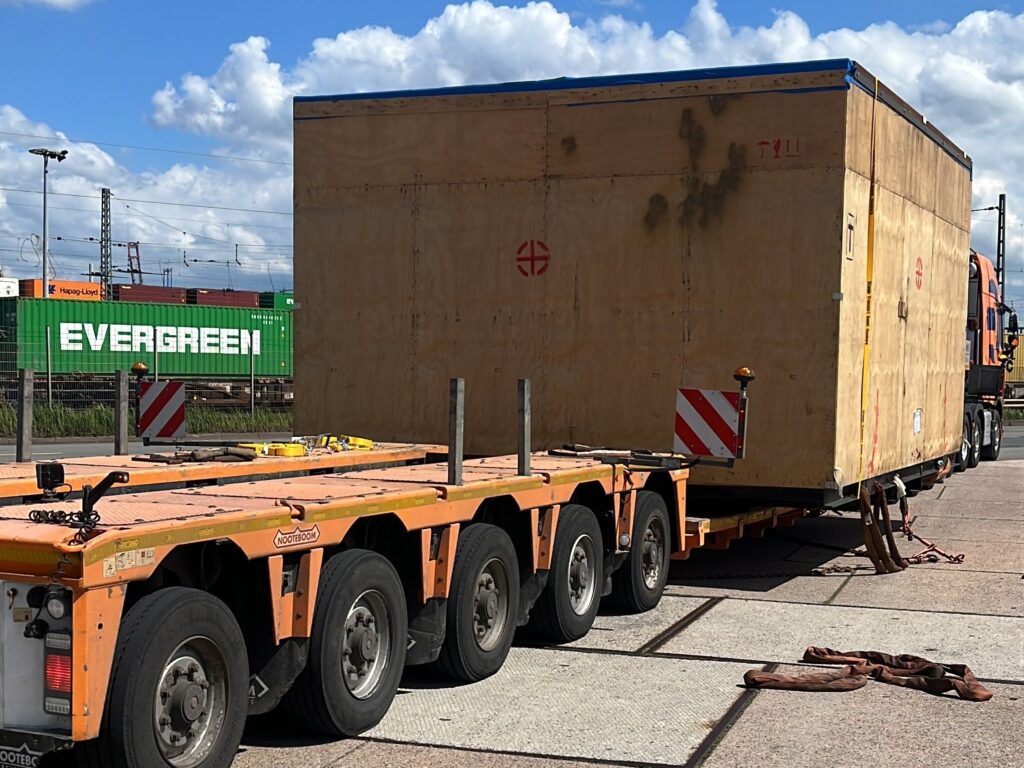 Mit 128t Gesamtgewicht und einer Breite von 4,90m haben wir den Transport einer Presse vom Hamburger Hafen nach Tschechien erfolgreich gemeistert. Basis war eine detaillierte Vorbereitung und Transportprozessplanung.